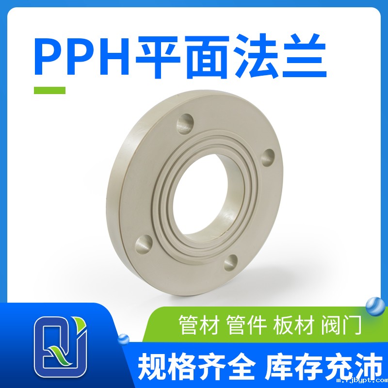 法兰连接就是把两个管道、管件或器材,先各自固定在一个法兰盘上,两个法兰盘之间,加上法兰垫,用螺栓紧固在一起,完成了连接。有的管件和器材已经自带法兰盘,也是属于法兰连接。PPH法兰是以高密度聚丙烯(PPH)为主体加相当的抗氧化剂、抗紫外线剂及色料制造而成。PPH法兰具有热定型性好、耐高温、抗化学药物性佳,可蠕变、张力大,绝缘性好、不溶于有机溶剂,不干裂,无毒性等特性。适用于化学工厂、电子半导体厂、药品厂、污水处理厂等多种产业。在高酸碱化学产品输送系统、纯水输送系统、饮用水输送系统、污废水输送系统、环境工程及一般管路系统、电信光缆输配管路系统都得到了广泛应用。