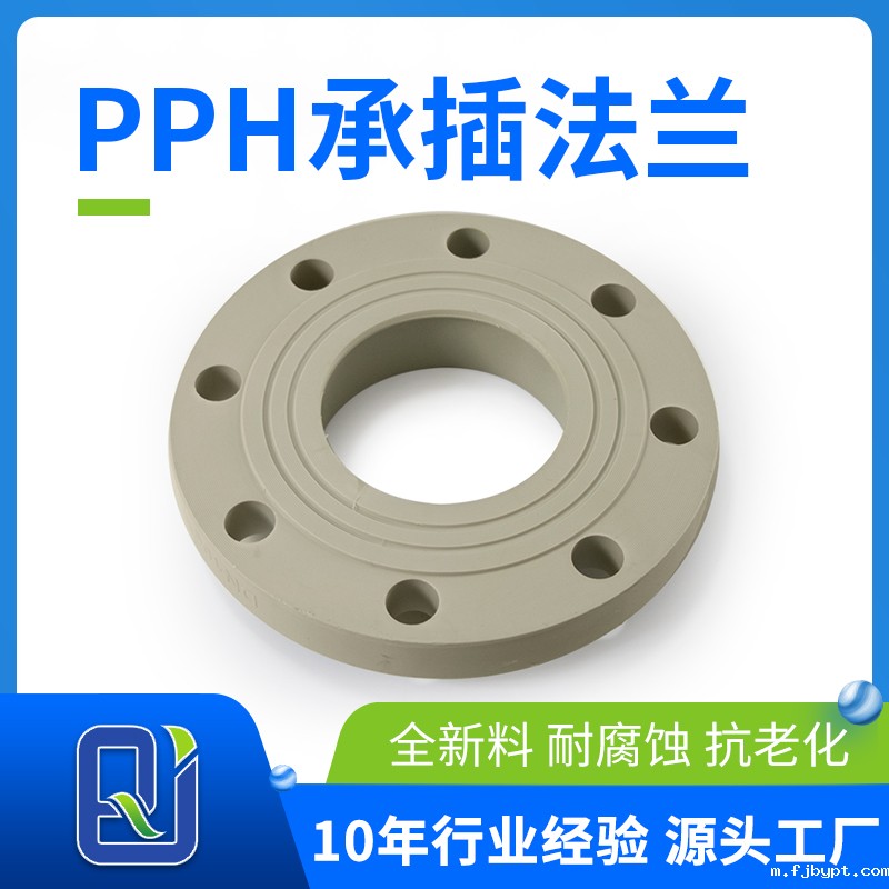 法兰连接就是把两个管道、管件或器材,先各自固定在一个法兰盘上,用螺栓紧固在一起,完成连接。法兰上有孔眼,螺栓使两法兰紧连。在管道工程中,法兰主要用于管道的连接,不同压力的法兰有不同的厚度,对应的螺丝孔数量,螺丝孔大小也不一样,使用不同的螺栓。PPH热熔承插法兰一般都是1.0Mpa压力的,螺栓数量及大小,